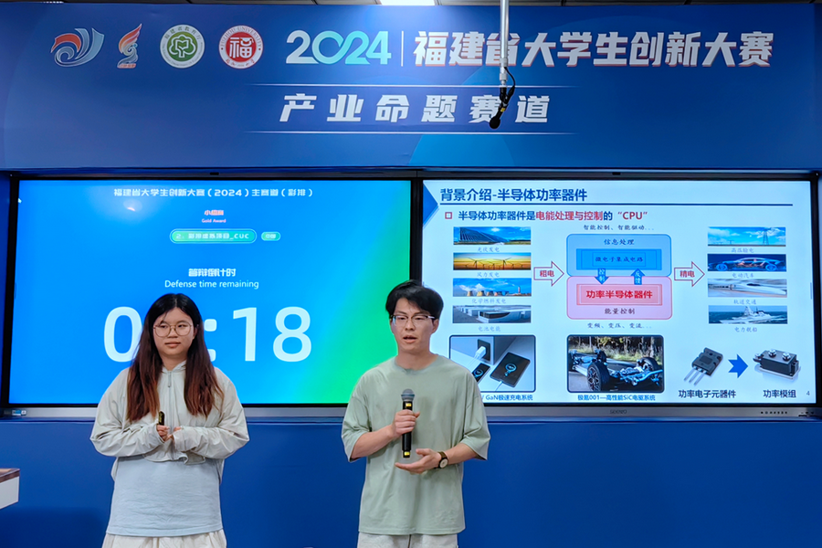 “大学生创新大赛能够帮助我们进一步培养专业兴趣,将产学研结合,促进新质生产力的形成,更好服务地方经济。”福州大学本科生王伟浩带来的项目是“‘碳’索未来——二氧化碳高效定向转化催化剂供应商”,今年是他第三次参加福建省大学生创新大赛。