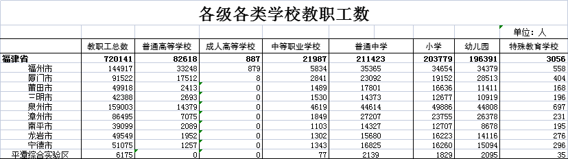 2022/2023学年初福建省各级各类学校教职工数