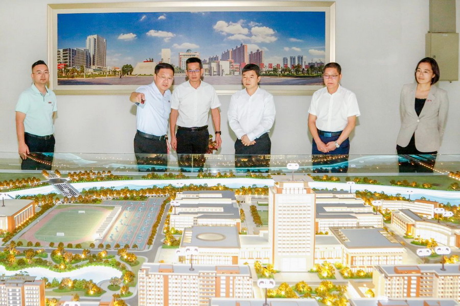 叶燊(左四)实地察看黎明职业大学洛江产教融合实践中心